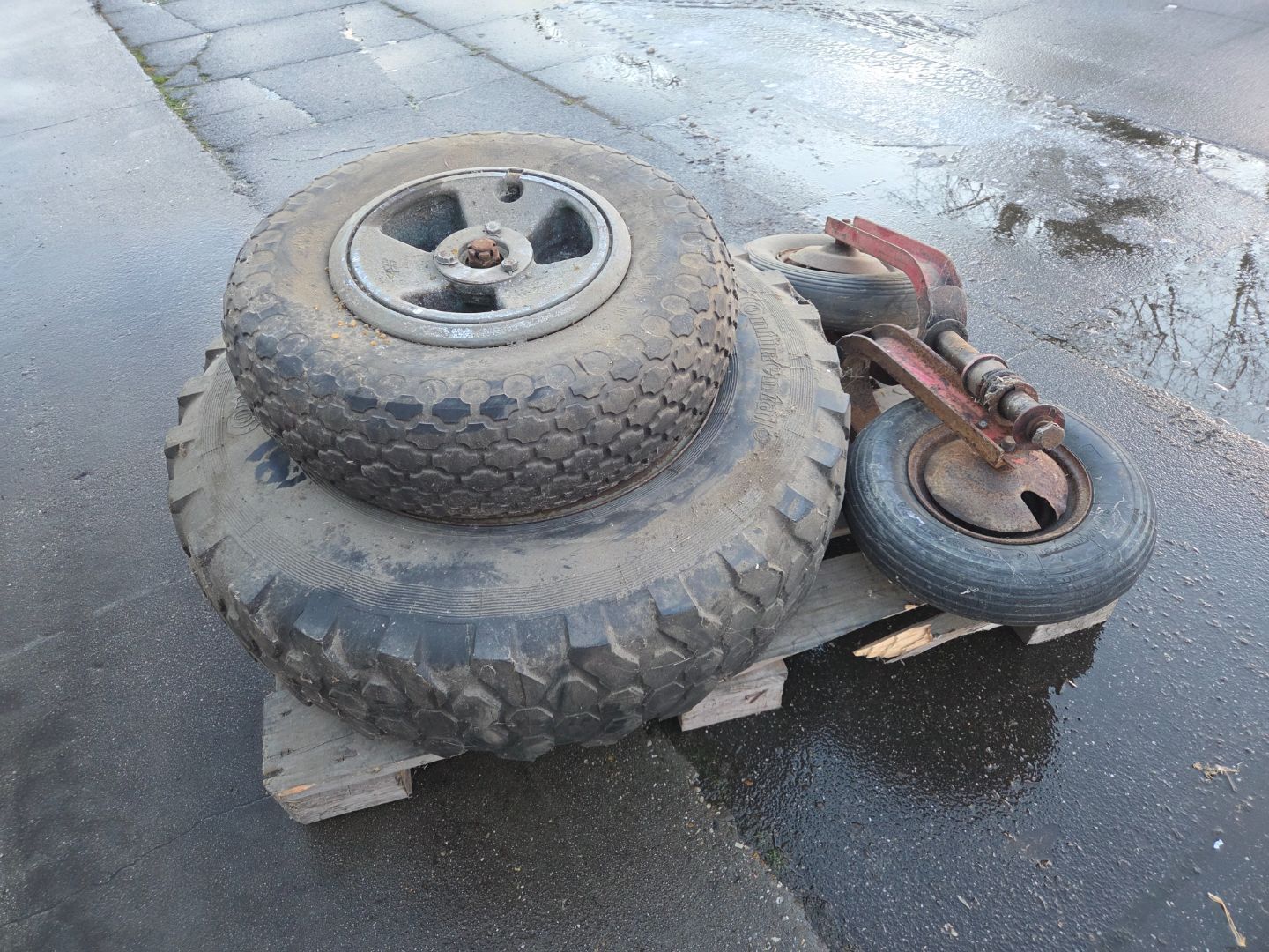 | Beschrijving: | Pallet met diverse wielen O.a "Unimog" wiel |
