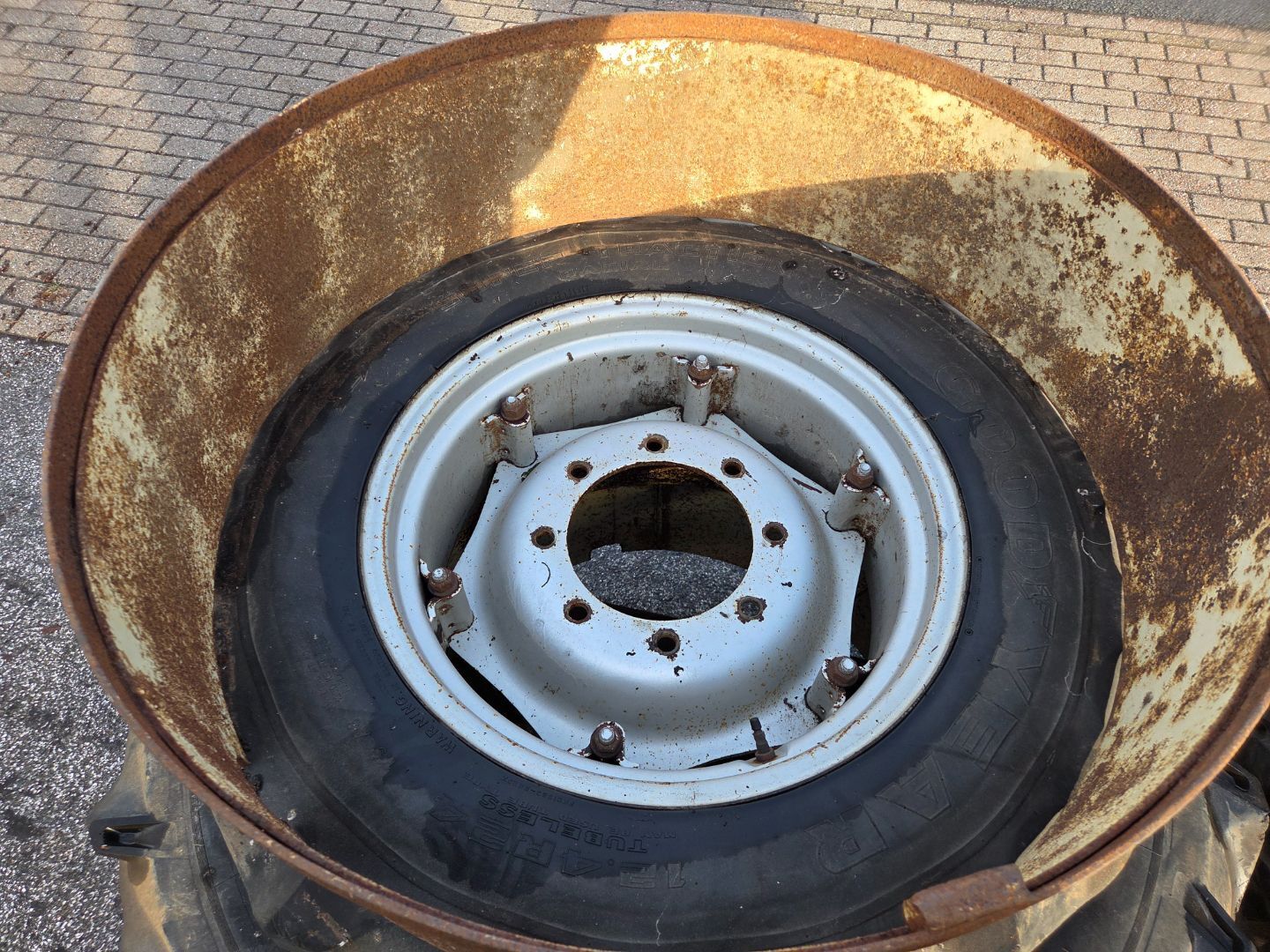 | Beschrijving: | Wielen set Maat : 15.5-38 en 12.4 R 24 + afstands ringen t.b.h.v dubbellucht 4 stuks op 2 pallets Locatie Meenteweg |