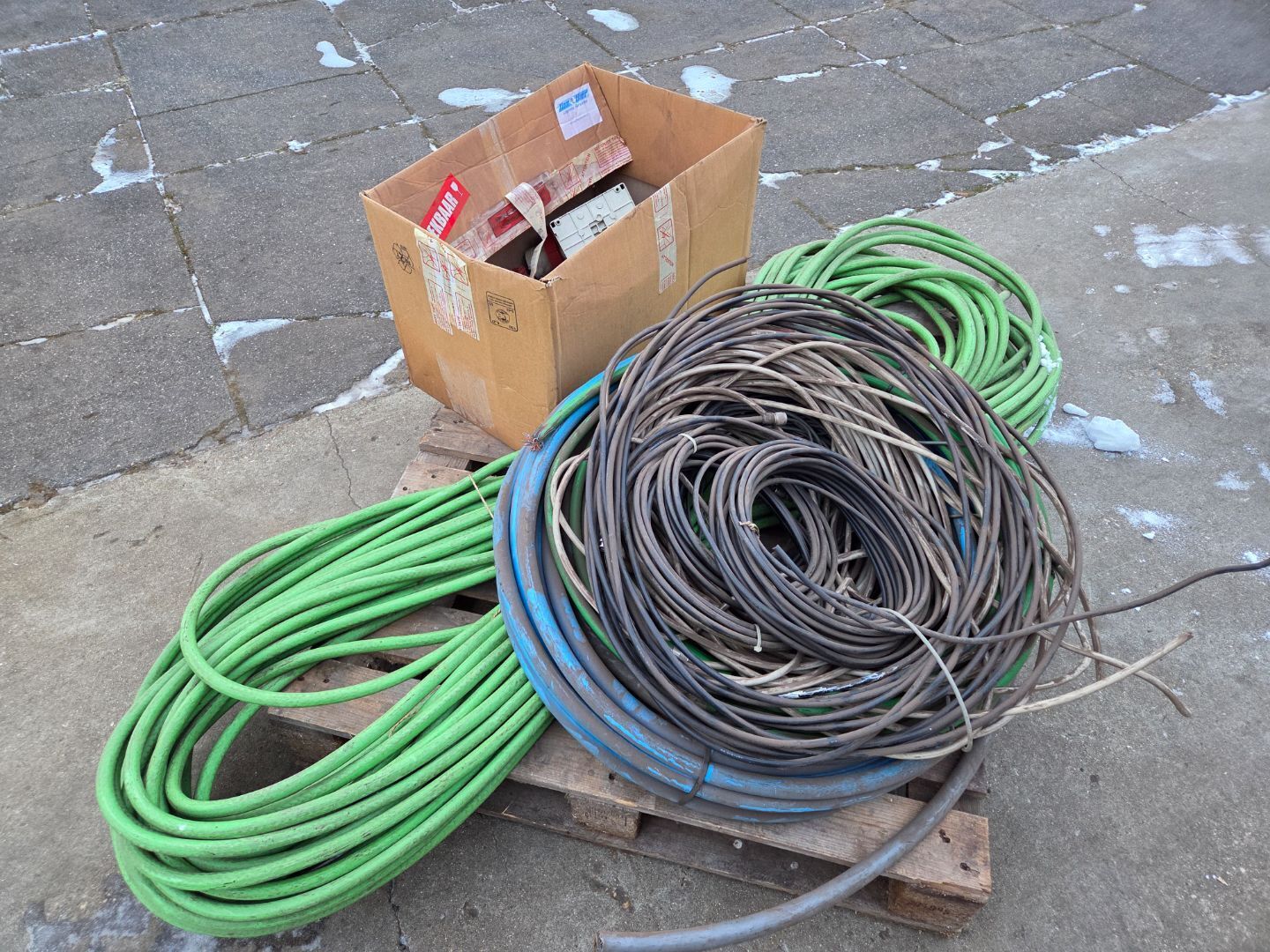| Beschrijving: | Pallet met diverse kabel + doos met stekkers etc |