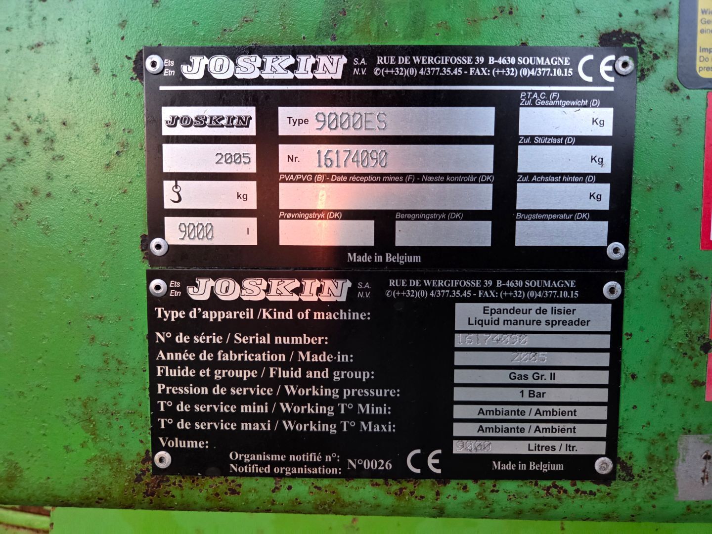 | Kavel naam: | Joskin 9000 bemester tank |