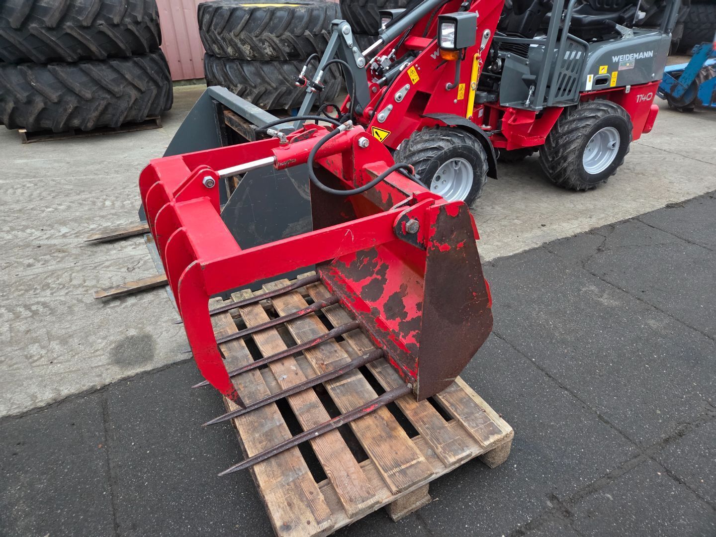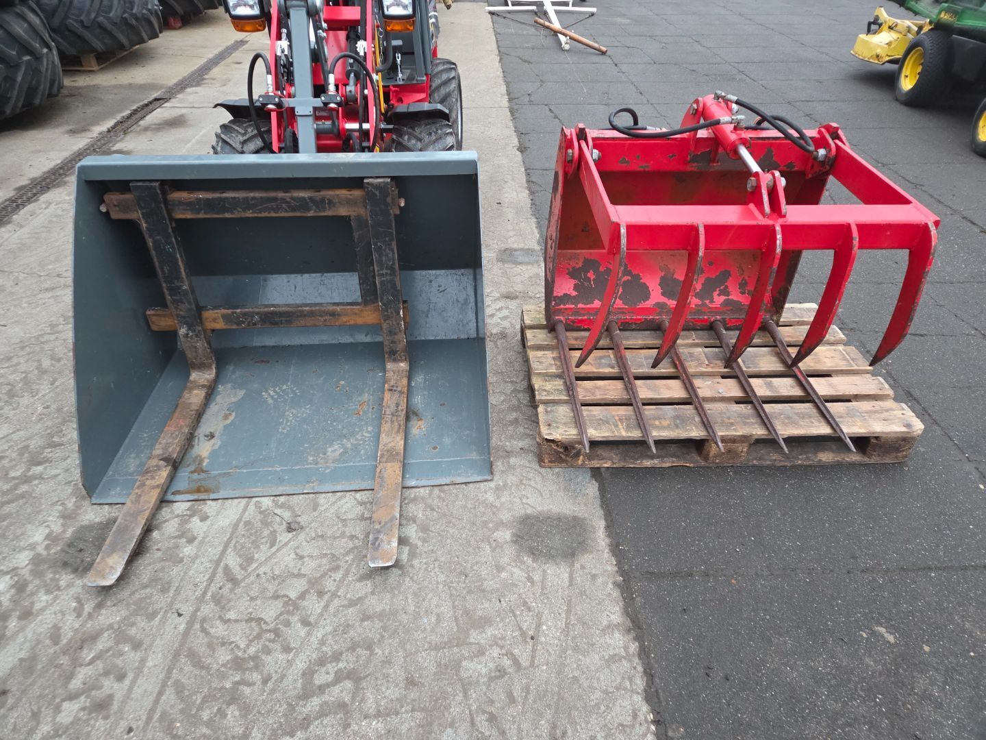 Compleet met grote dichte volume bak , verstelbare palletvork en krokodillen bak (mestklem)