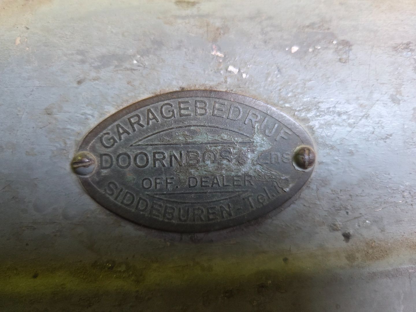 Origineel (zeldzaam) dealer plaatje "Doornbos Siddeburen" op de motorkap aanwezig