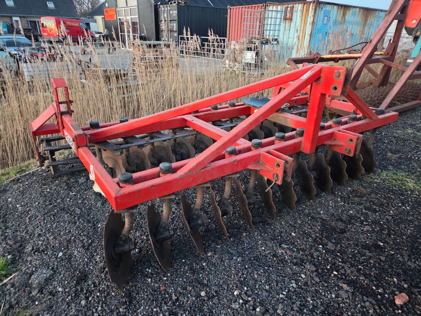 | Beschrijving: | Schijveneg Merk : EVERS Werkbreedte : 3.00 mtr Uitgevoerd met kooirol + 2 extra reserve schijven Nette goedwerkende machine Locatie Wittewierum |