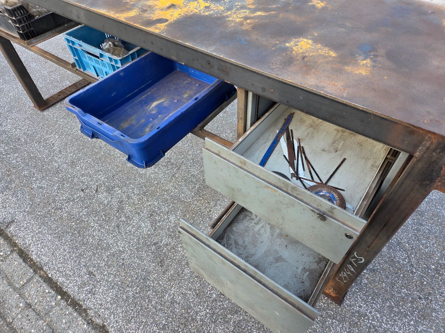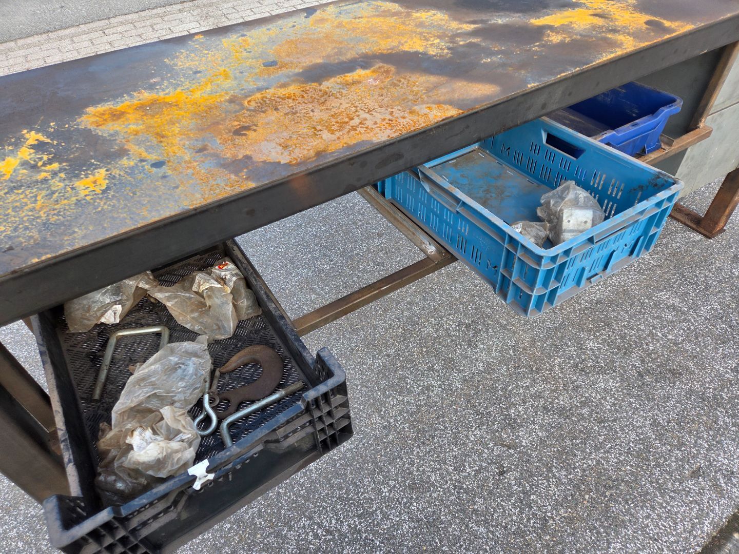 | Beschrijving: | Metalen werkbank Uitgevoerd met lades en bakken Lengte circa 3.00 mtr Breedte 70 cm Stalen werkblad Locatie Meenteweg |